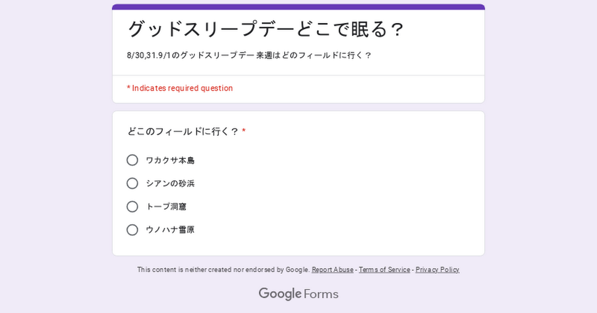 ということで第一回グッドスリープデーどこにいくか?のアンケートを開催。ちょっとブログのネタにもしたいのでぜひご投票ください。