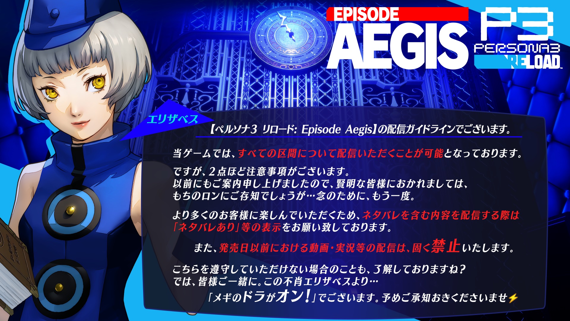 『ペルソナ3 リロード: Episode Aegis』 実況・生放送向け配信ガイドライン公開 | ペルソナチャンネル | ペルソナシリーズ最新情報
