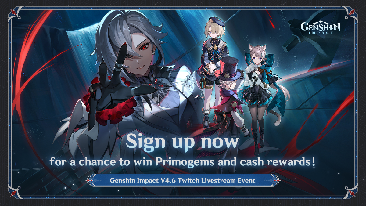 Hoyoverseが提供するRPG「原神」2024年4月24日に新キャラクター『アルレッキーノ』実装を含むアップデートVer.4.6「双界に至る炎、熄えゆく赤夜」が行われます。それに絡んで、Twitchにてゲーム実況者向けのイベントが開始されるようです。