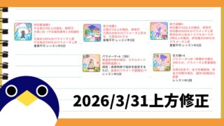 チャレンジPアイテムを持ち込むことで、デメリット効果を受ける代わりに、パーフェクトレッスンの上限をさらに上げ大きくステータスを上げることが可能に。