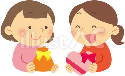 オリジナルのフリー素材『友チョコを交換する女の子イラスト』