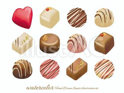 複数のチョコレートが一つにまとめられ画像素材セットです。細かい部分に使う画像としてどうでしょうか。