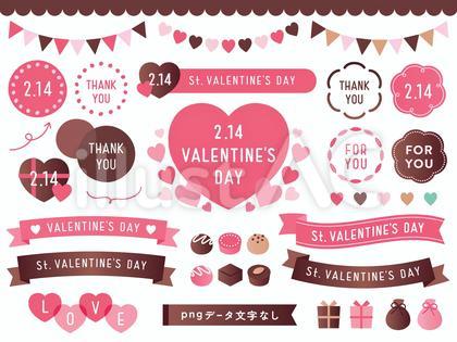 リボンやハートマークなどバレンタインに関連した装飾に使えるセット画像です。