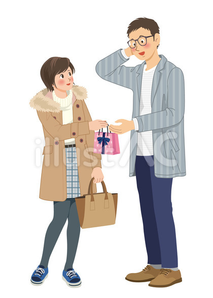 オリジナルのフリー素材『バレンタインのチョコを持つ人物70-16イラスト』
