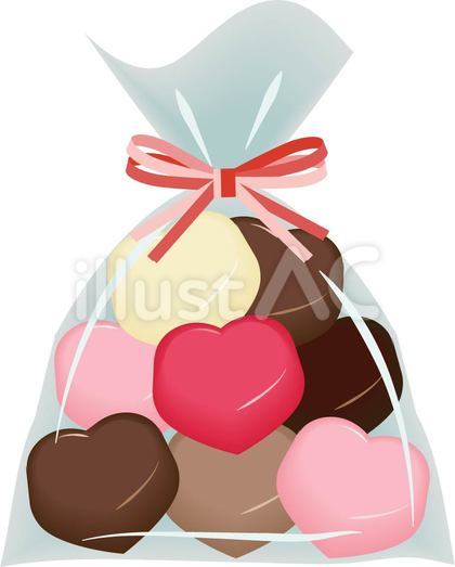 オリジナルのフリー素材『袋詰めのハートチョコレートイラスト』