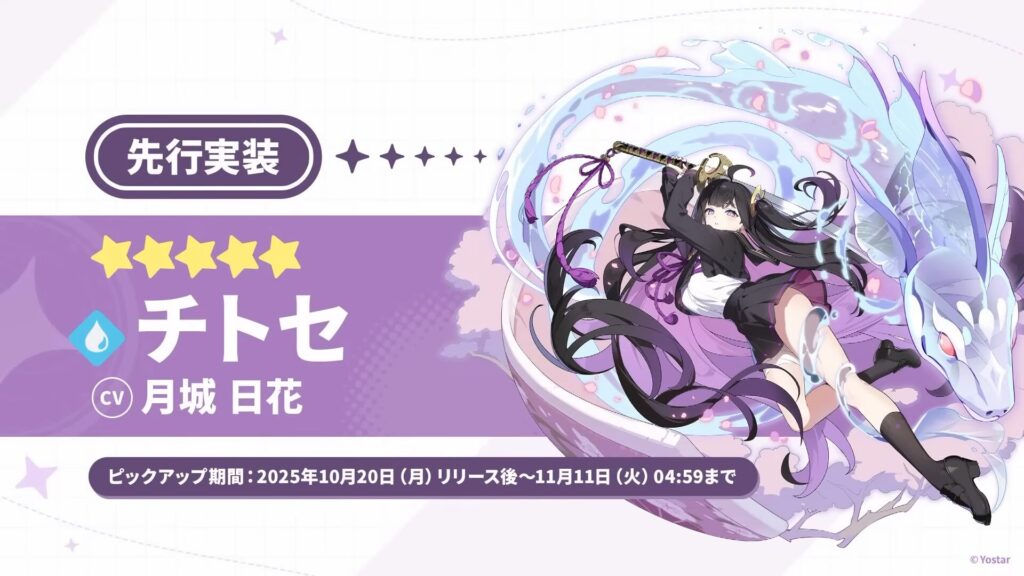 サービス開始となる10月20日より開始される期間限定ガシャから登場する『チトセ』が、先行実装の第一弾となるようです。