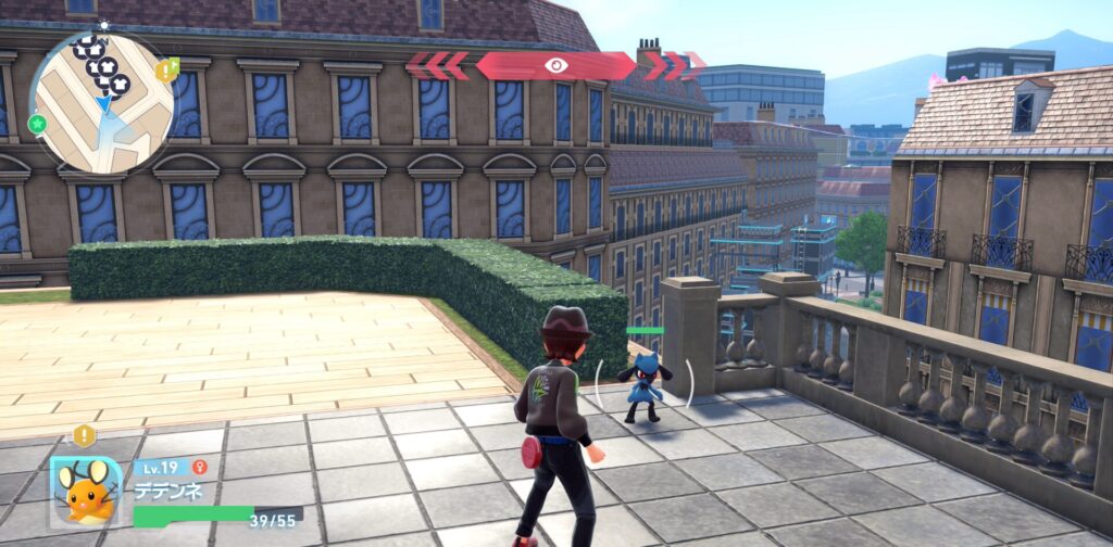 リオルはルージュ地区のポケモンセンターから南西の方に進んだ建物の屋根の上に出現します。なお、図鑑の説明では晴れの時だけよく現れるとのことです。
