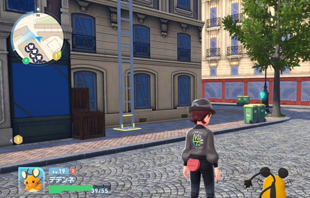バトル場を抜けて奥の建物に近づき右の方に進んでいくと梯子があります。近くには複数のゴミ箱やヤブクロンがいるのでそれが目印になります。