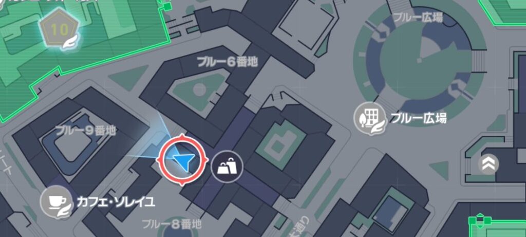 その後、ブルー6番地の方へと進み、服を販売している十字通りに北東の入り口から入ります。