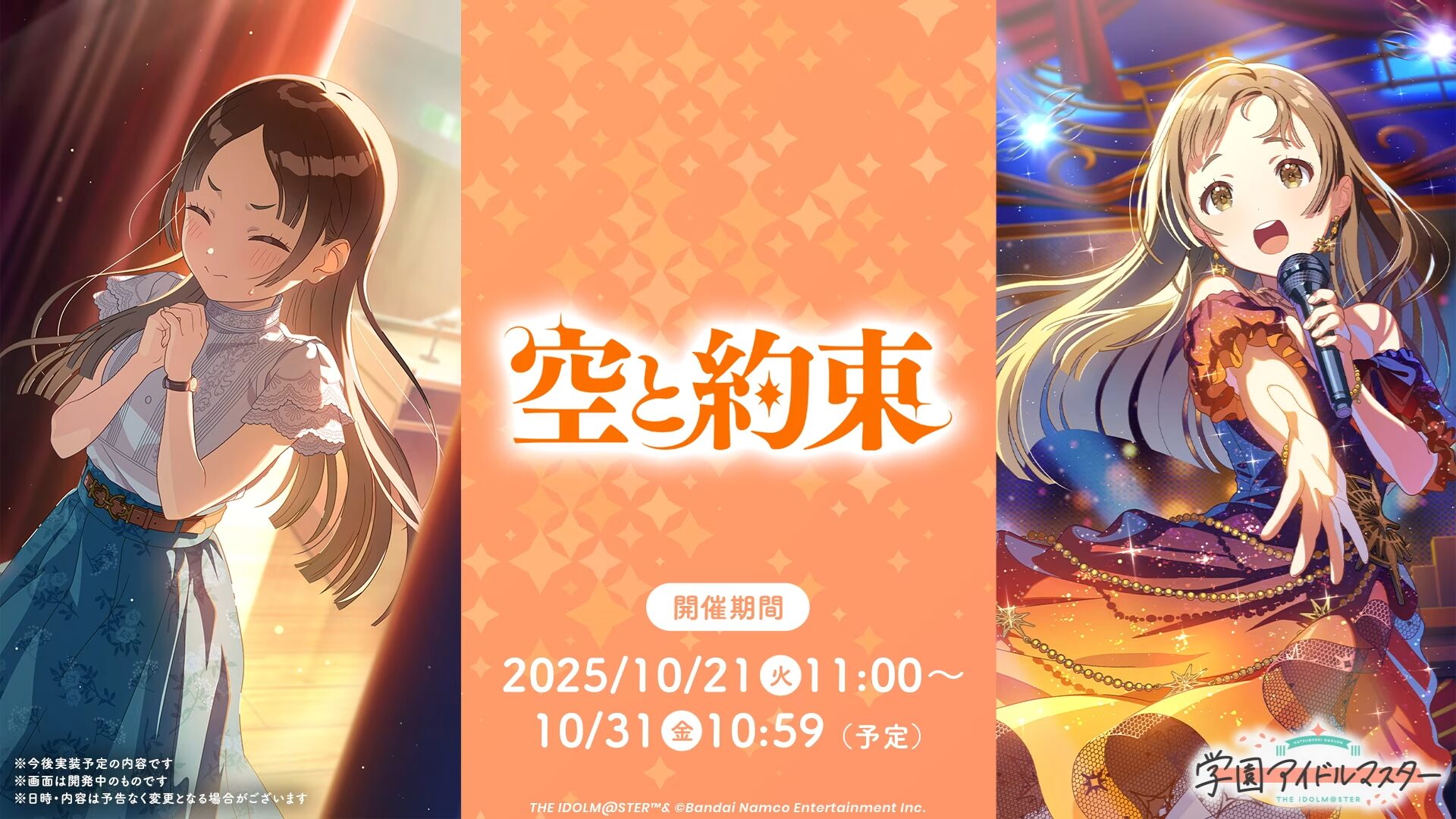 2025年10月20日に配信された、学園アイドルマスターの情報番組『初星学園HR #STEP3 倉本 千奈』にて、倉本千奈のSTEP3で追加される新たなガシャ『空と約束 倉本千奈』の情報が公開されました。