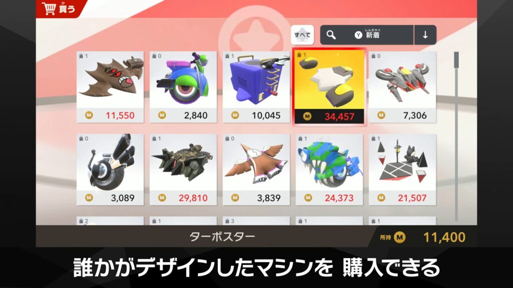 購入と値上がりという形式にしてはいますが、あくまでいいね機能のような、自分のデザインしたマシンの人気を知るための機能と考えたほうが良さそうです。