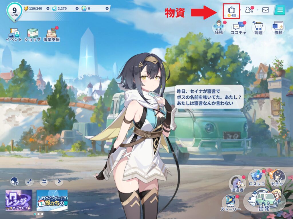 トップ画面にある物資の項目からアイテムの使用画面に移ることができます。