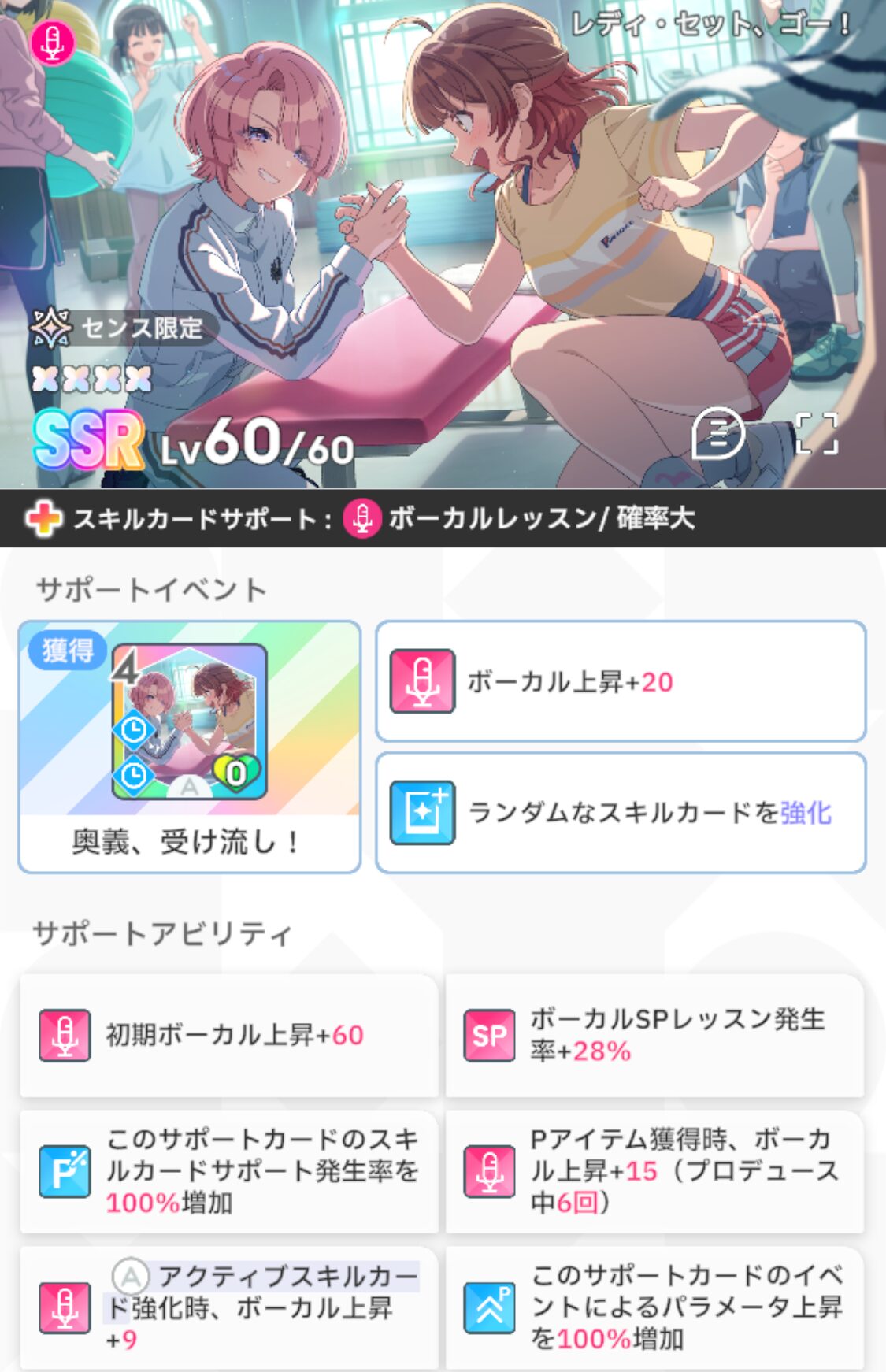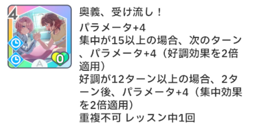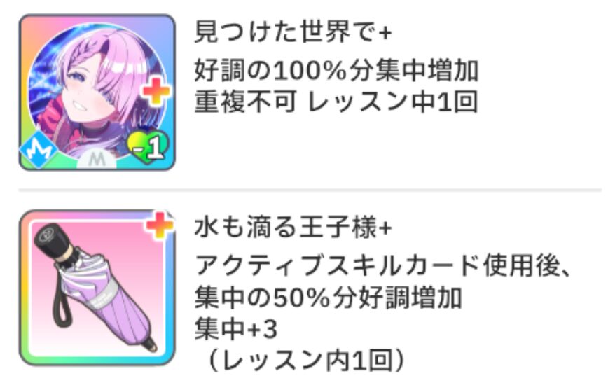 スキルカード『見つけた世界で+』は、好調の100%分集中増加する効果。