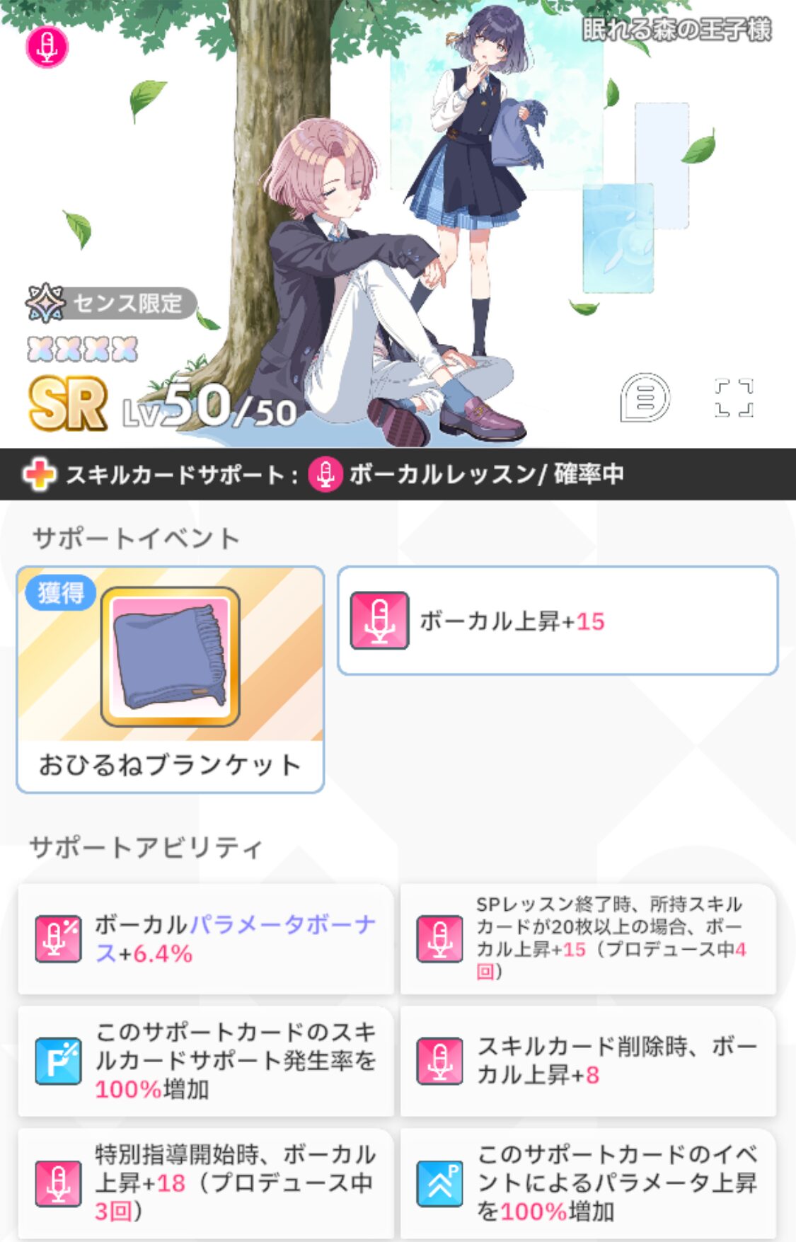 スキルカード『見つけた世界で+』は、好調の100%分集中増加する効果。