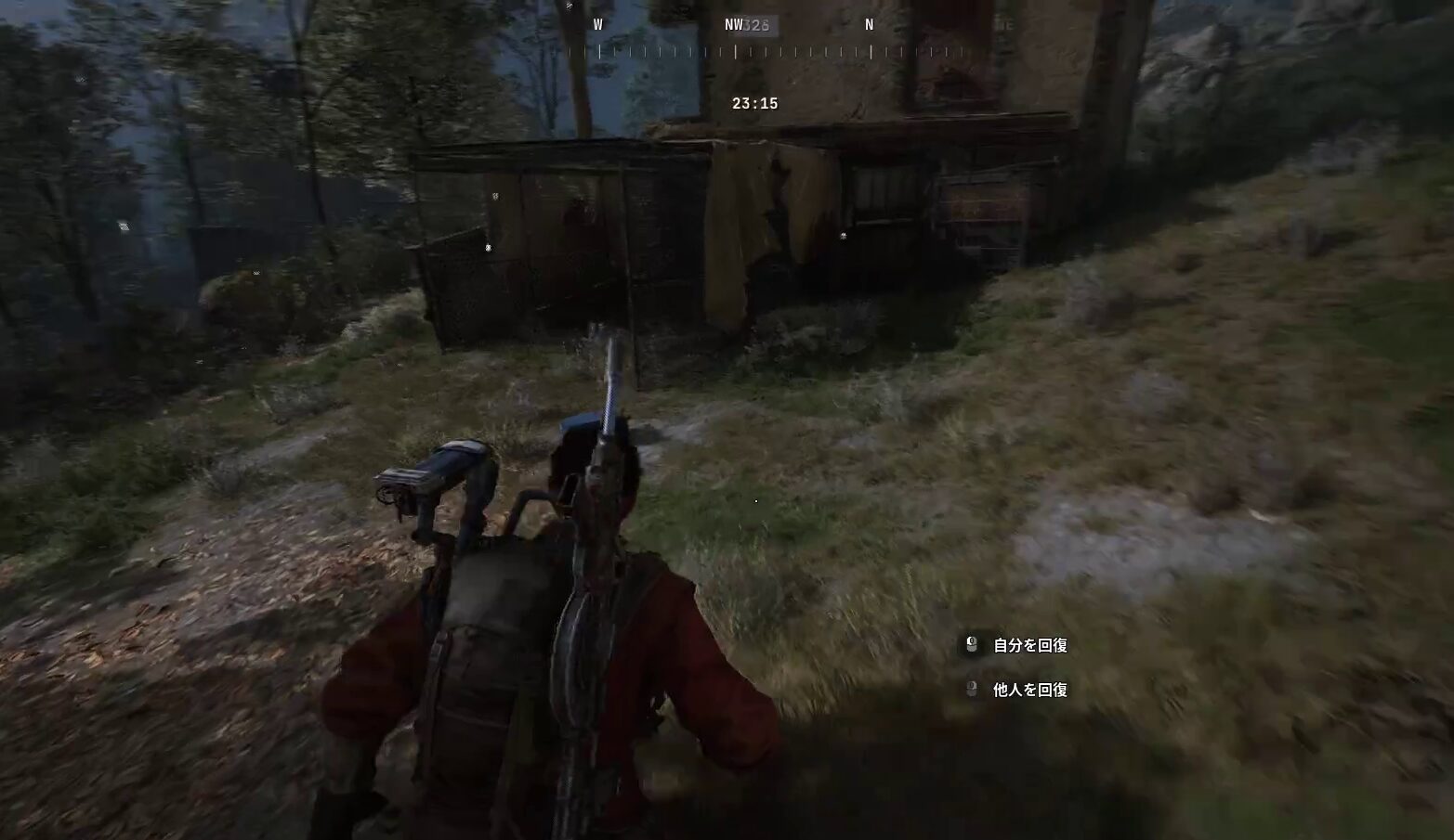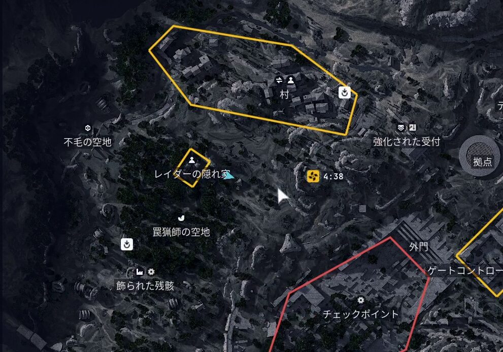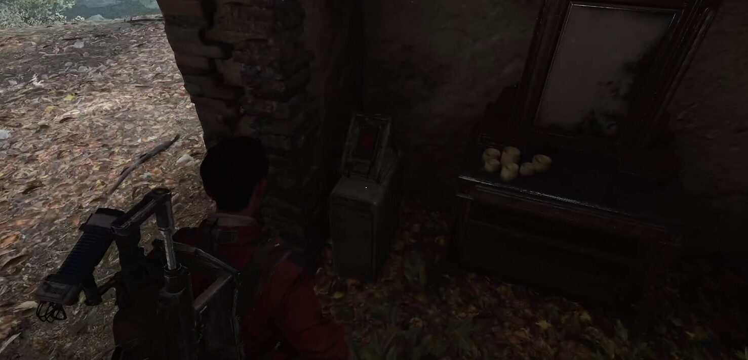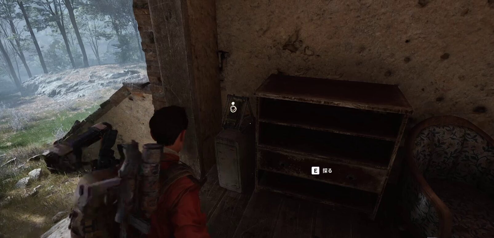 上記マップの、プレイヤーがいる位置、レイダーの隠れ家から東の方にある廃屋にも、ボタンがあるケースを確認しました。