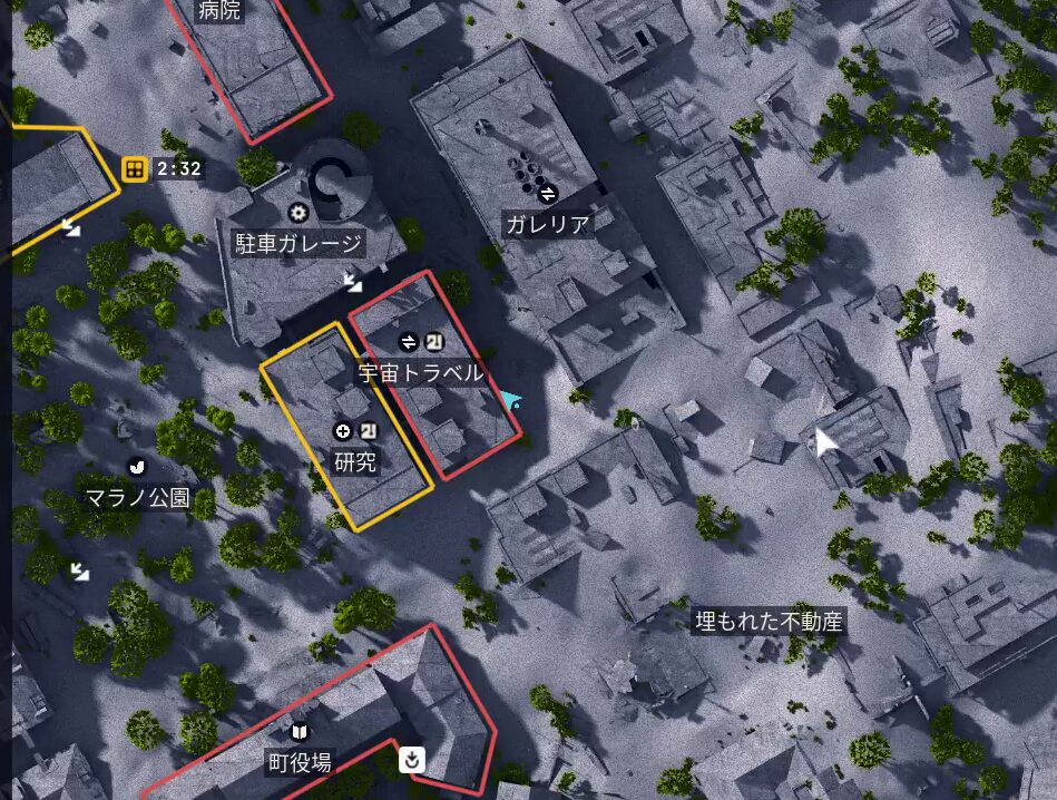 埋もれた街のJKV従業員アクセスコードは、埋もれた街の宇宙トラベルという建物の4Fに使用できる扉があります。上記マップの位置から侵入すると簡単に向かう事ができます。
