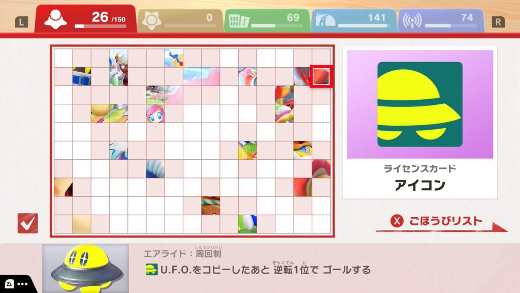 カービィのエアライダーのエアライドモードのクリアチェッカー『U.F.O.をコピーしたあと逆転1位でゴールする』を達成できたので情報を残しておきます。