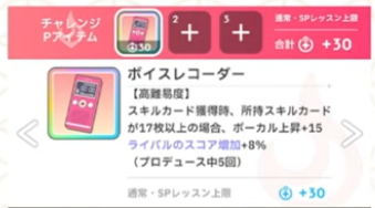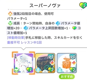 スキルカード獲得時、所持スキルカードが17枚以上の場合、ボーカル上昇+15