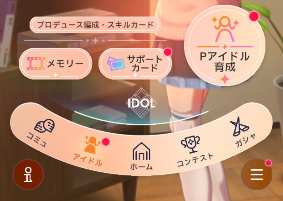 スキルカードスイッチは、メニューのアイドルの項目の中にある『プロデュース編成・スキルカード』の項目から行う事が可能。
