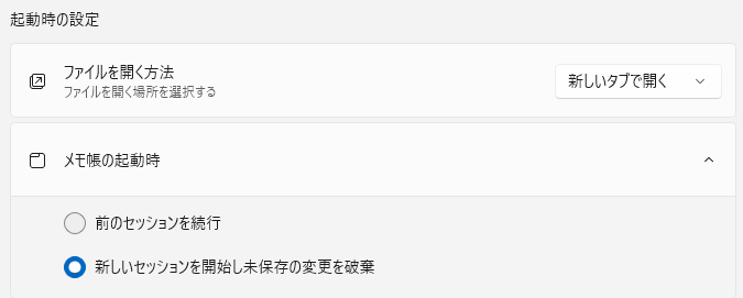 起動時 終了時のタブを開かないようにする設定方法 Windows11 メモ帳