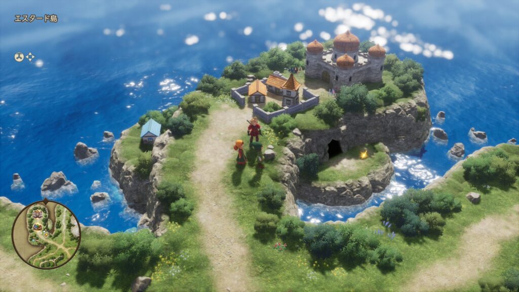 エスタード島の探索をしている時に、グランエスタード城の崖下のところに何やらアイテムがあることに気付く。グランエスタード城の城下町や、城の中、船での移動等、色々行ける方法があるのではないか?と試していたのですが、辿り着くことができませんでした。