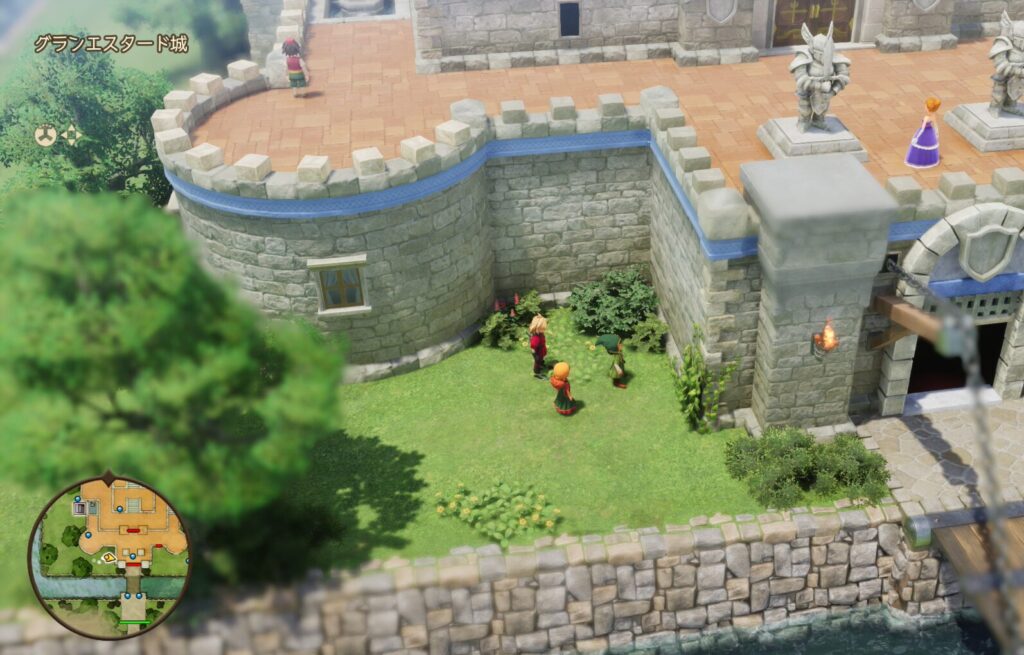上記の画像のグランエスタード城の庭に置いてある樽を壊すことでちいさなメダルが入手可能でした。上記の画像は、既に樽を破壊済みですが、主人公がいる位置に樽が置いてあります。