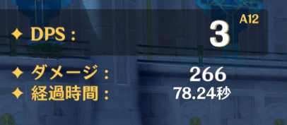 画面左上にて、経過時間とダメージ、そこから計算したDPSが表示されます。