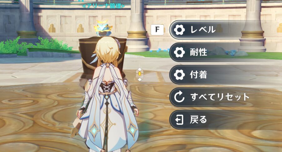 付着の設定は、属性の選択の後、『ターゲットを選択した元素に対して無効にしますか?』と聞かれます。ここではいを選択するとその属性が無効、いいえを選択するとその属性が常時付着した状態となります。元素反応を絡めた測定を行いたい場合、利用すると便利そうです。