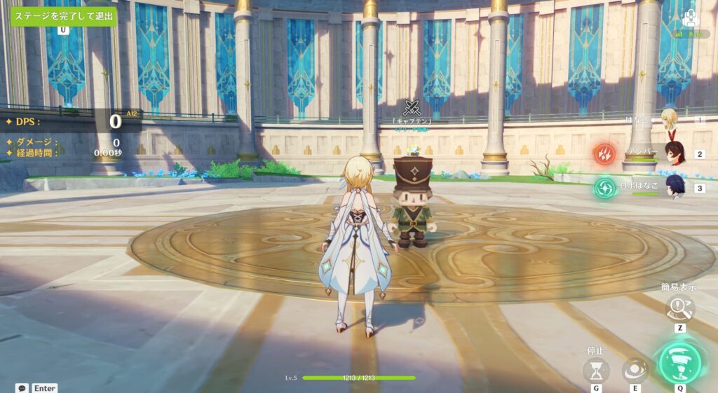 ステージに入ると前方にNPC『キャプテン』が設定されています。キャプテンのダイアログから『開始』を選択することでDPSの測定を開始することができます。