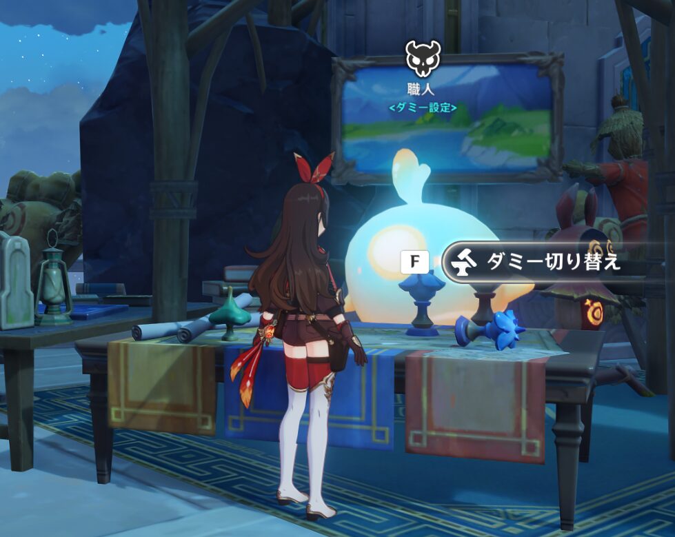 エネミーの種類は、広間にいるダミー職人から変更することが可能です。