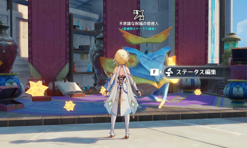 不思議な祝福の管理人によってキャラクターの性能を変更することが可能です。