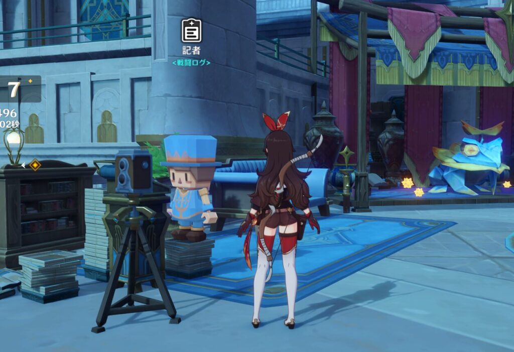 DPSの測定後、測定所の入り口にいるNPC『記者』に話しかけることで、その回の戦闘でのダメージログを見ることが可能です。