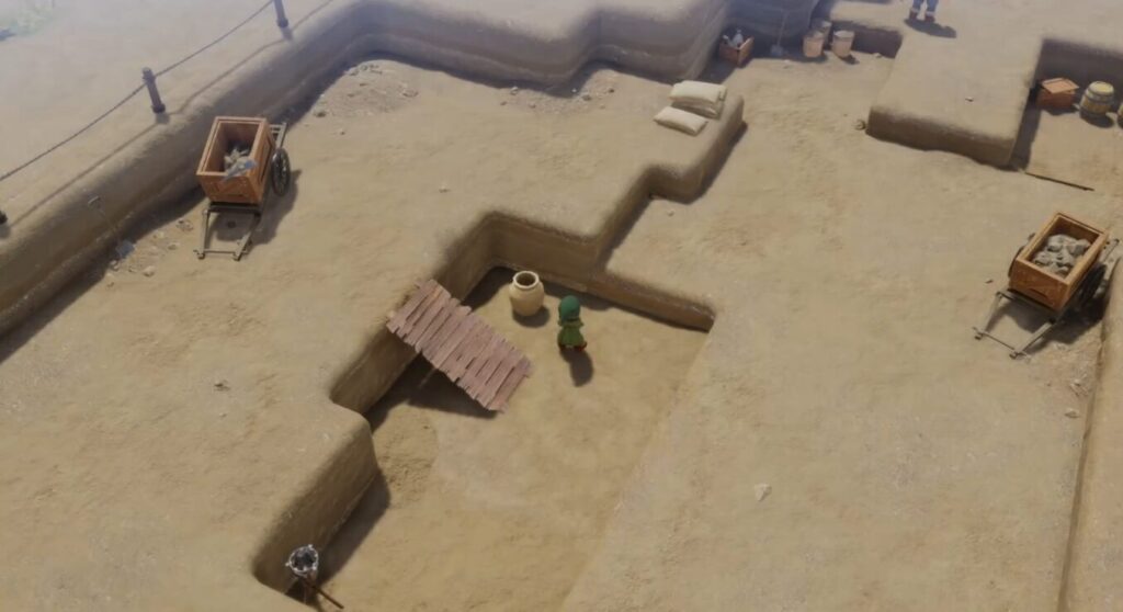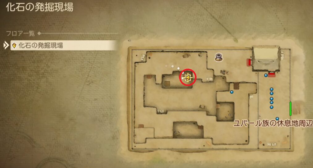 化石の発掘現場の2つ目の小さなメダルは、発掘現場内部にあるツボから入手が可能です。こちらのちいさなメダルは、最初に発掘現場に来た際は入り口で見張りをしている男がいるため奥に進むことができず入手することができません。