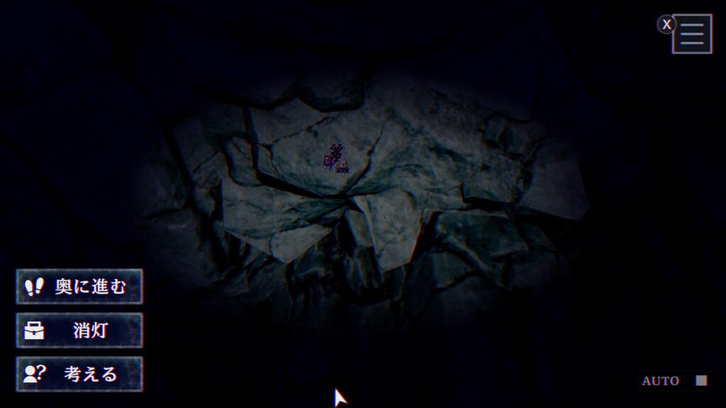 水口勇佐シナリオ『聖域へ』の『聖域から』から開始した画面で懐中電灯の明かりをつけて天井を探すことで発見できました。
