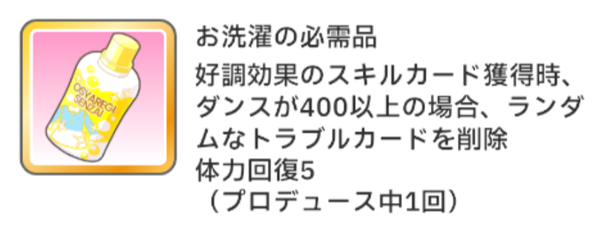 Pアイテムは発動回数の制限がないため、如何に多く除外札を増やし、集中効果のスキルカードを複数回発動させ集中を高められるかが鍵となりそうです。スキルカードの方も、使用数追加+1の集中効果のスキルカードということで、Pアイテムの発動回数を増やすことを意識した効果になっていそうです。