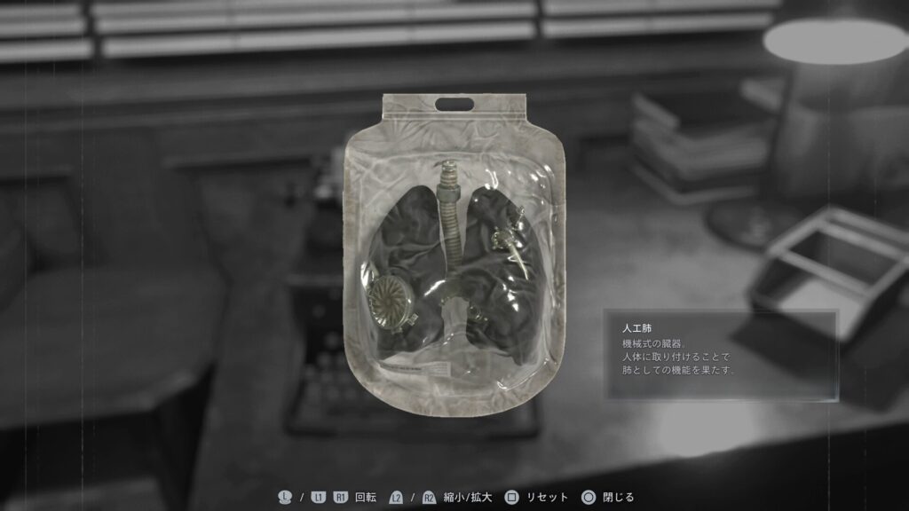 人工肺を入手するには、事前に東病棟の太陽のクォーツ入手の際に同時に見ることができる『臓器輸送ケースの強制解除手段』を見ておく必要があります。