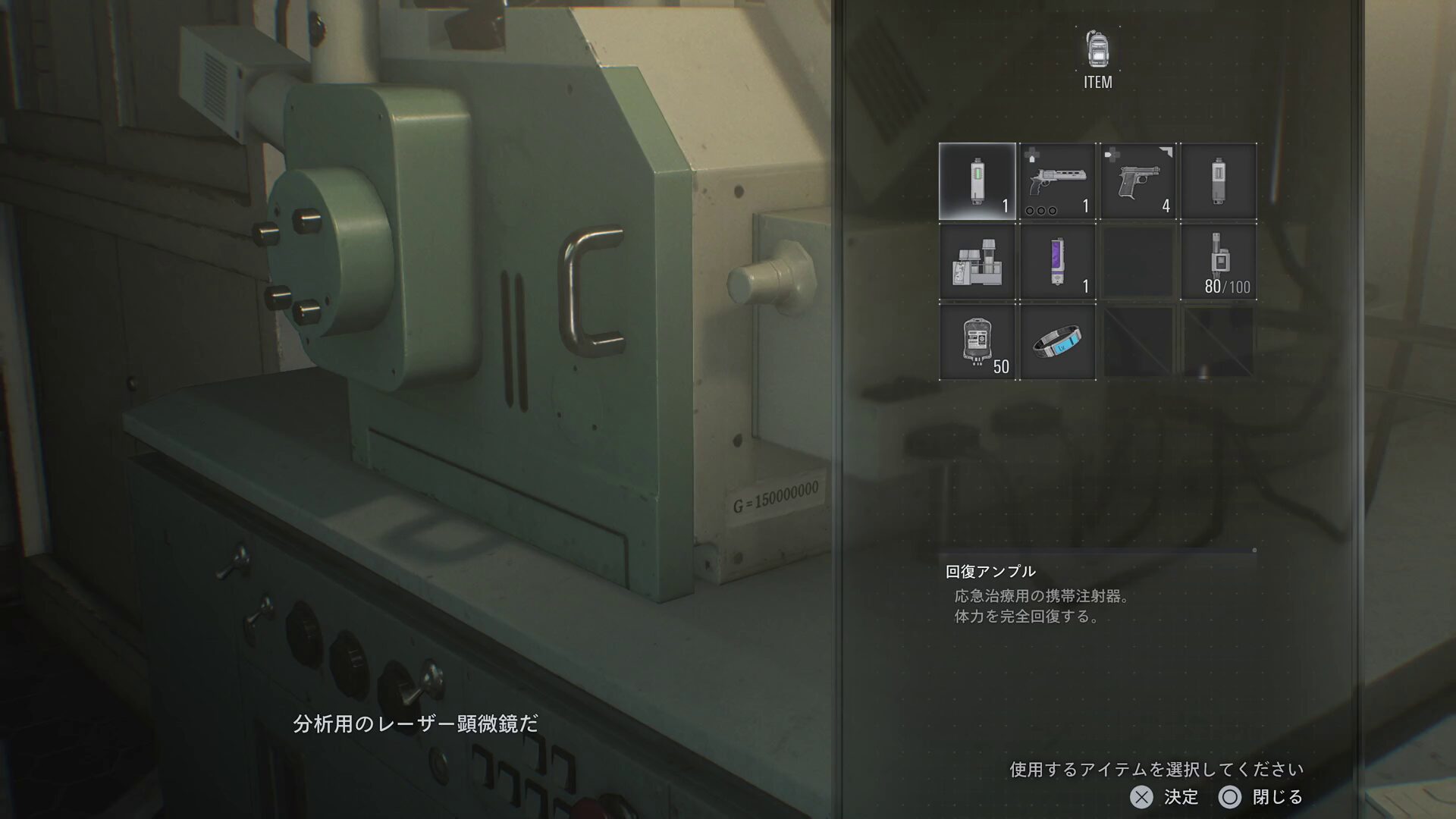 次にこの暗号を解くことになる。まず、Gのヒントは、東病棟の解析装置の側面に『G = 150000000』という表記。