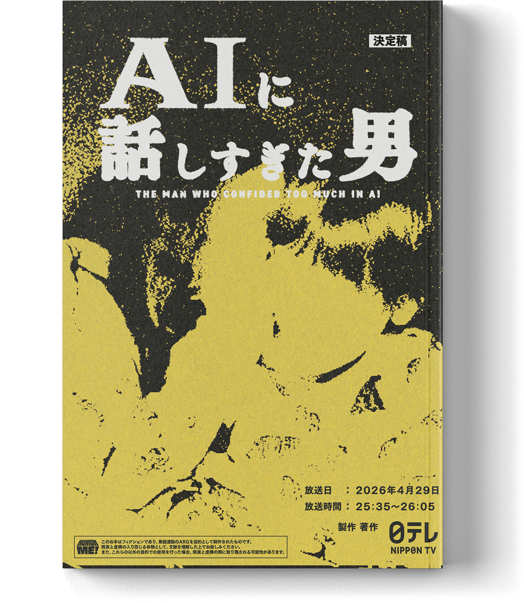 2026年4月29日25:35~関東ローカルでテレビ放送されることが予定されている番組『AIに話すぎた男』がARG(代替現実ゲーム)であることが発表されました。