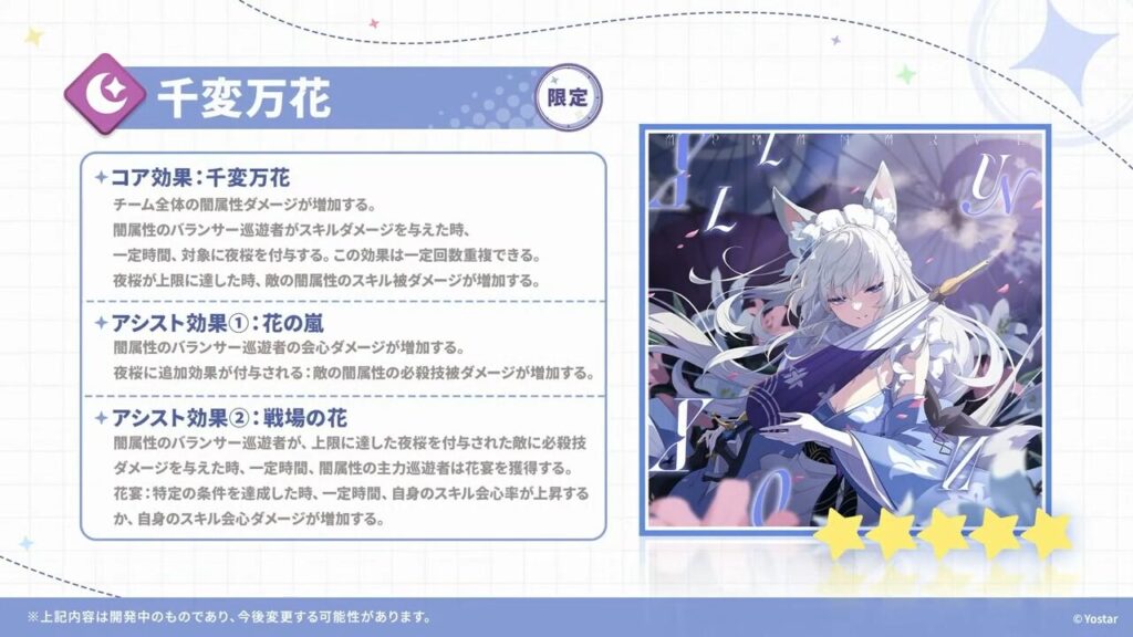 2026年4月11日に配信されたステラソラの情報番組『魔王放送局(MHK) 「魔王くんちゃんネル」~ハーフアニバーサリー生放送~』にて、新たな巡遊者『オトハ』、ロスレコ『千変万花』の実装が告知されました。