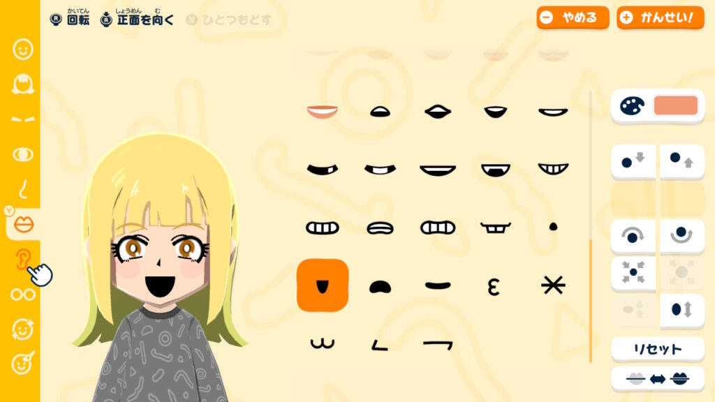 普通の笑顔パーツで作ってしまってもよいかもしれません。