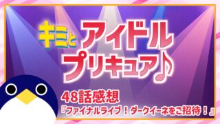 アニメ キミとアイドルプリキュア♪ 48話 感想『ファイナルライブ!ダークイーネをご招待!』【キミプリ】 2025年2月2日より放送開始したプリキュアシリーズの22作目、アイドルを題材とした歌とダンスが魅力の作品『キミとアイドルプリキュア』48話『ファイナルライブ!ダークイーネをご招待!』の感想記事です。 2026.01.18 又三郎 0 アニメアニメ感想文感想文