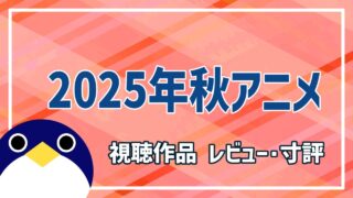 アニメ感想文 2025年秋 10-12月期終了アニメ 寸評・レビュー【アニメ調査室(仮)第79回アンケート参加】 アニメ調査室(仮)により行われているアンケートへの回答も兼ねて、2025年秋に終了した夏アニメのレビュー記事となります。 2026.01.07 又三郎 0 アニメ感想文感想文